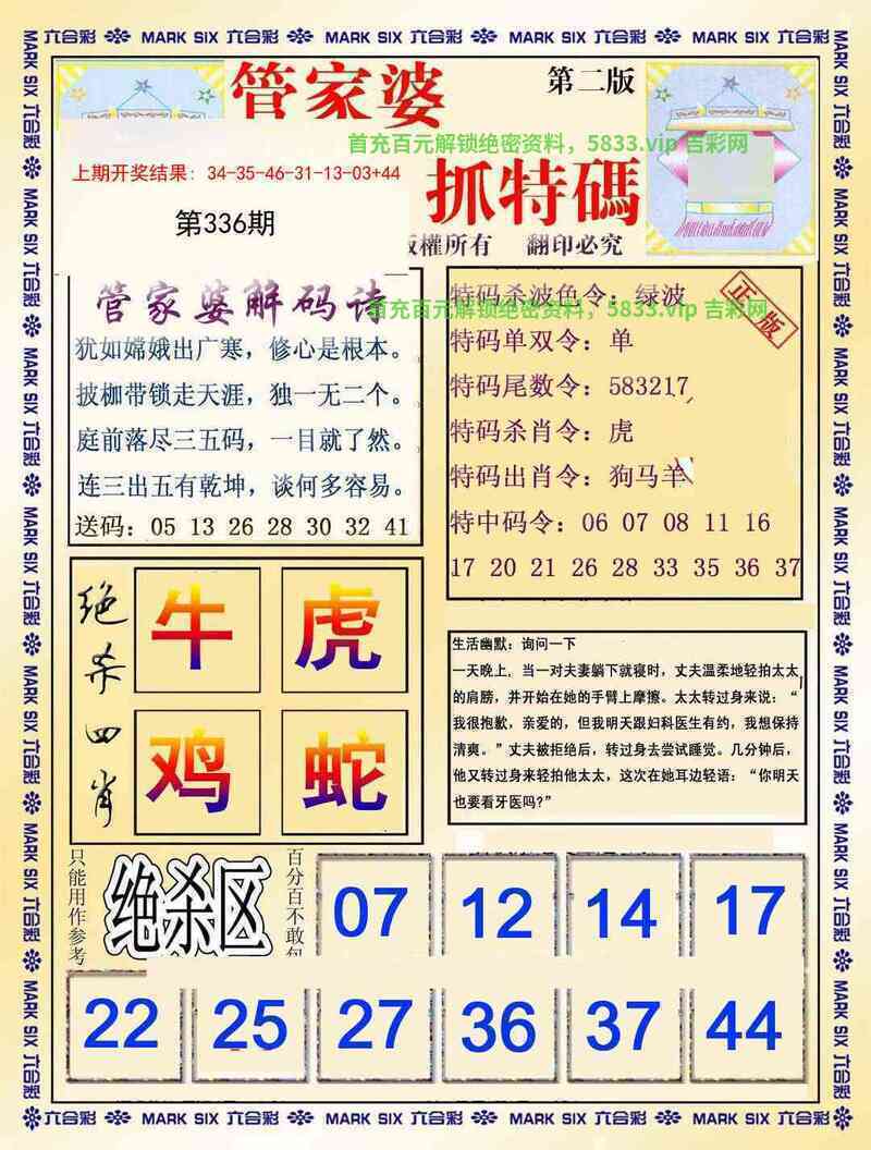 | 338期:绝杀三肖【牛-虎-羊】开:發00准 |