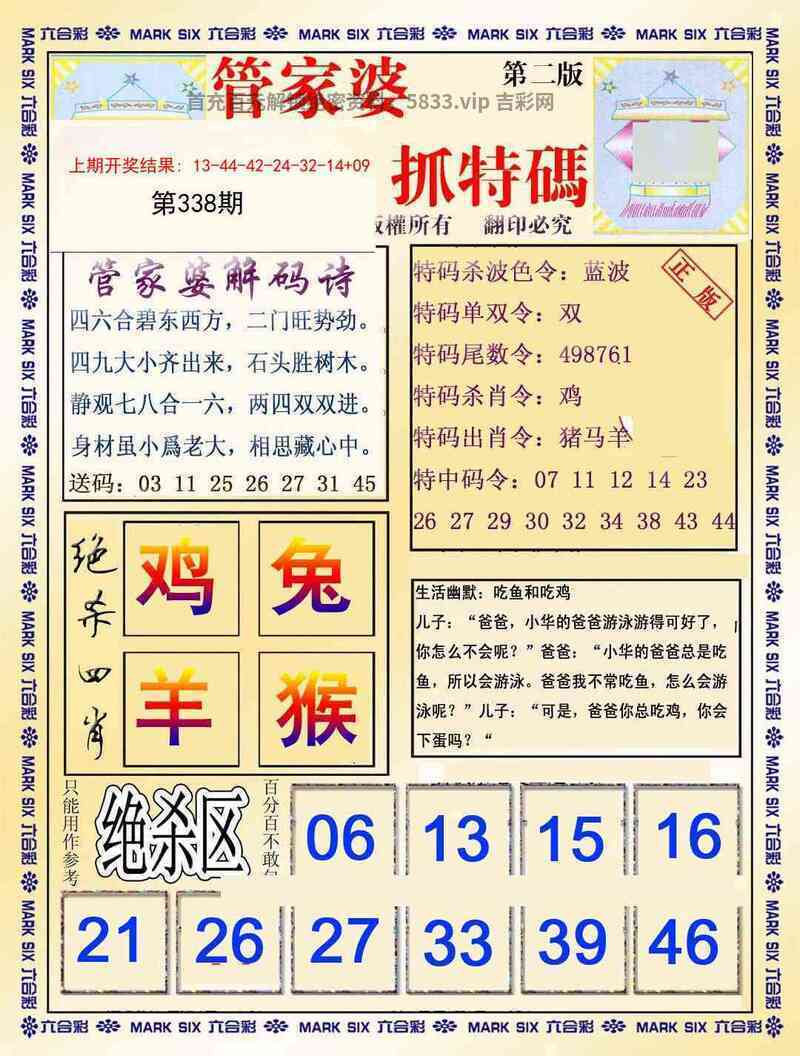 | 338期:家野两肖【野兽+猪鸡】开:發00准 |